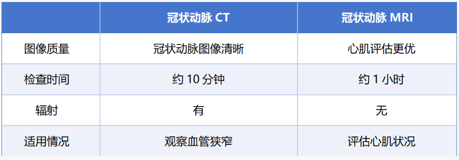 建議:若核心需求是“看血管”,優先選CT;若擔心輻射、或需詳細查心肌,MRI更合適。